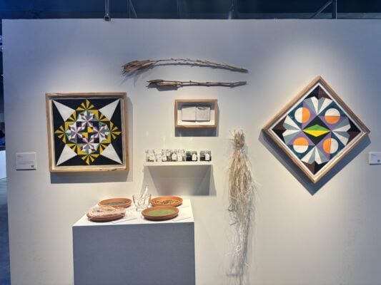Wilson’s creative journey began with a deep dive into history, combing through records on agricultural practices and artwork, and the ways they became embedded in things such as quilting, textile work, and painting.