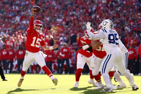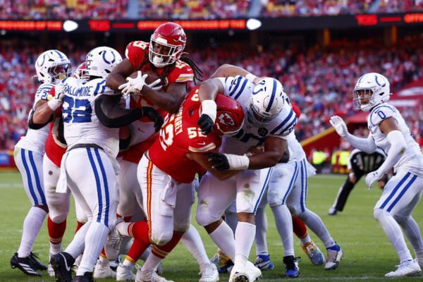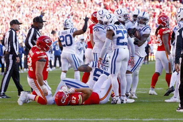 Indianapolis Colts at Kansas City Chiefs NFL football game in Missouri in November of 2025.