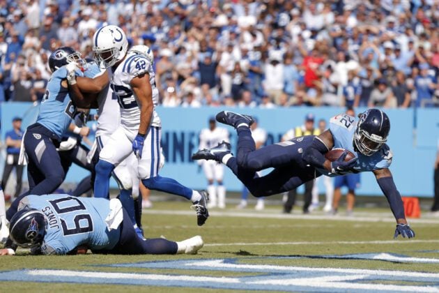 Indianapolis Colts Wide Receiver Michael Pittman (11) heads up field after the catch during and NFL Game between the Indianapolis Colts and Tennessee Titans on September 26, 2021 at Nissan Stadium in Nashville, TN. (Photo by Jeff Brown/Indianapolis Recorder)