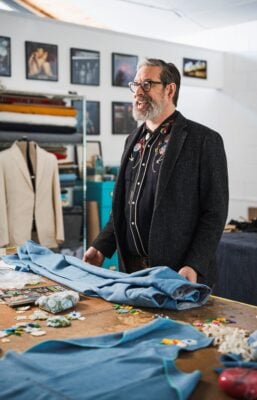 Atwood initially began creating Western wear as a hobby, inspired by the cowboy-themed costumes country music stars wore on album covers and during onstage performances in the 1960s and ‘70s. He later turned this hobby into a career, founding Union Western Clothing with business partner Joe David in Indianapolis in 2013 to design custom-made suits for special occasions, featuring embroidered designs telling the wearer’s story.
