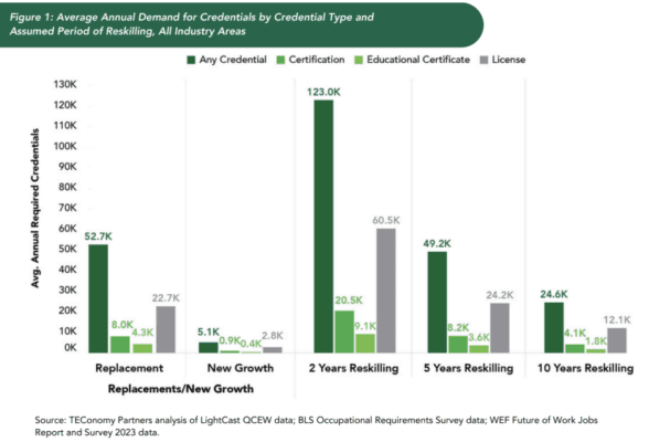 And about 70% of job openings across four in-demand industries will require that additional training, according to the white paper, released Thursday. Non-degree credentials are industry-recognized certifications, certificates, licenses and other short-term training programs.