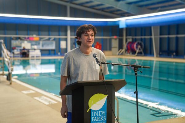 Indy Parks operates aquatics programming year-round at indoor pools and expands offerings during the summer at outdoor pools, including swim lessons and swim teams. The department also offers scholarships to help families access those programs.