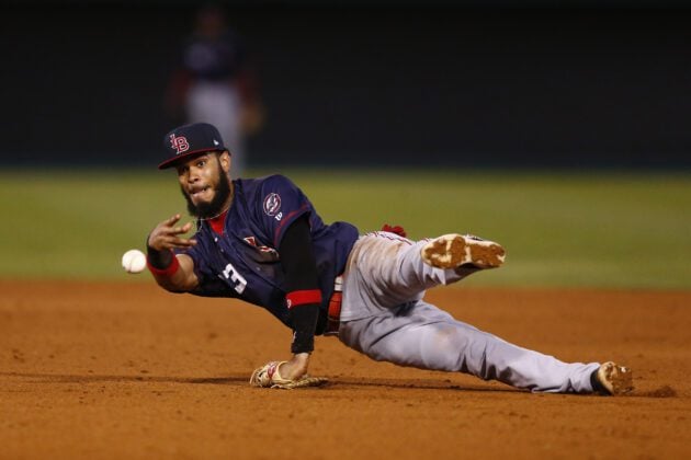 Indianapolis Indians infielder Rodolfo Castro (3) makes the catch for the out during a MiLB game between the Louisville Bats and the Indianapolis Indians on August 5, 2022 at Victory Field in Indianapolis, IN.(Photo by Jeff Brown/Indianapolis Recorder)