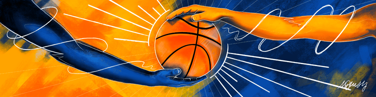 Amiah Mims stands with her mural, “IN the Beginning,” which was unveiled Dec. 10 at Gainbridge Fieldhouse. The mural is located in the main concourse, outside of section 2. Works by Indiana artists will be unveiled throughout the upcoming year through a partnership with the Pacers Foundation and International Marketplace. Mims, a local artist who also created the mural on the building of the Indianapolis Recorder, was selected to complete the first mural.