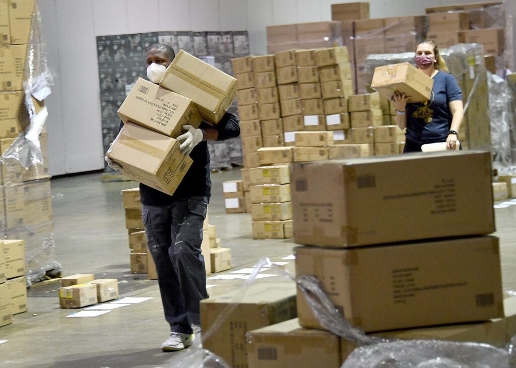 Pacers Sports & Entertainment’s Cory Wilson, vice president of Community Engagement and Pacers Foundation executive director, and Kristina Wedseltoft, Community Engagement manager, sorted and loaded toys Nov. 17. (Photos provided)