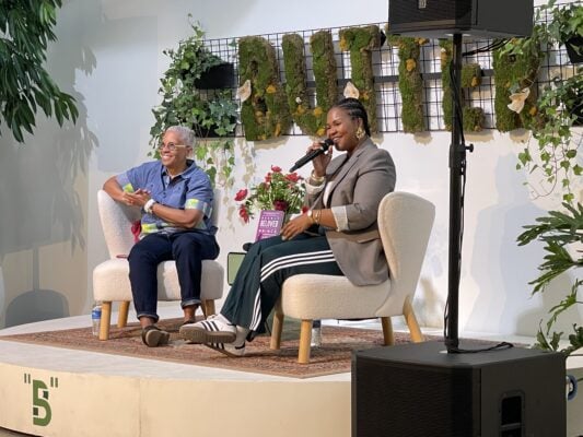 Author Pamelo Ayo Yetunde, left, discusses her new book, “Dearly Beloved: Prince, Spirituality, & this Thing Called Life” with moderator Mariah Ivey at BUTTER Fine Art Fair on Aug. 30, 2025 in Indianapolis. (Photo/Camike Jones)