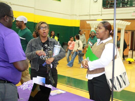 Recruiter Nicholas Sanders of Arkansas Baptist College helps Marcella Lee and Ebony Lee with college admissions procedures. (Photo/Curtis Guynn)The Dumm family check out admission requirements for the University of Arkansas at Pine Bluff. (Photo/Curtis Guynn)Ruth Woods is the co-founder of the Indianapolis Black Alumni Council, Inc. (Photo/Curtis Guynn)