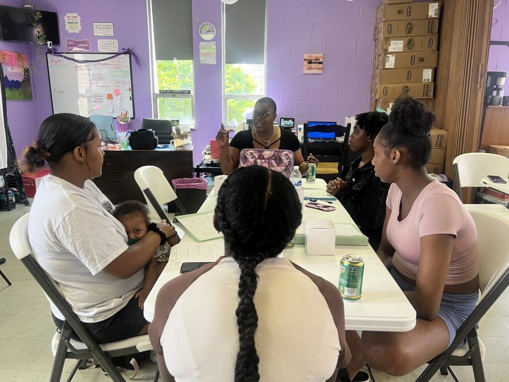 In a cozy room filled with warmth and compassion, a woman encourages teenage mothers to embrace the journey of parenthood. She encourages them through preparation, confidence and love.