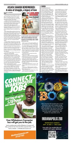 INDIANAPOLIS RECORDER FRIDAY, OCTOBER 3, 2025 A5Land a warehouse job, and the Whitestown Connector will take you there for free. Find a list of the companies hiring %u2013 and the bus schedule %u2013 at WorkforceConnector.com.Free Whitestown Connector bus will get you to the job.for the renovation. Athletic Coordinator and Dean of Students Devon Caldwell-Valdez (or %u2018Mr. CV%u2019 to his scholars) explained that the old weight room, with its 100-pound dumbbells and outdated machines, was a barrier to student participation.%u201cWe have a lot of kids that are intimidated by the weight room,%u201d Caldwell-Valdez said. %u201cSo, at 4 o%u2019clock, they walk out of the building, they go and do who knows what with who knows who. I think this upgrade might build some excitement and some confidence for some kids to get in the weight room and actually do some after-school activities.%u201dCaldwell-Valdez, who attended Northwest as a student and has lived in the neighborhood since he was in first grade, said the investment holds deep personal significance.%u201cSeeing community partners investing in my neighborhood, in my kids, in my school, it means a lot, especially since it is long overdue,%u201d Caldwell-Valdez told the Indianapolis Recorder. %u201cI walked into the weightroom as a freshman in 2009 and we had the same things. So, at this point now, it%u2019s kind of exciting.%u201dFor associate teacher and girls%u2019 basketball coach Anissa Butler, the new facility is a tool that will benefit students far beyond athletics. Her teams haven%u2019t had consistent access to a functional weight room in nearly six years.%u201cIt means a lot to me and the students are super excited,%u201d Butler said. %u201cI think it%u2019ll help tremendously, not even just on the court, I think it will help them in the classroom as well %u2026 when they%u2019re more fit and more healthier, they just do better.%u201dShe also anticipates positive ripple effects throughout the community. %u201cThey%u2019ll go tell friends, they%u2019ll go tell family members and they%u2019ll be more excited to get to the weight room outside of Northwest,%u201d Butler said. %u201cThey%u2019re going to want to work out instead of getting into mischief.%u201dThe project aligns with Elevance Health%u2019s focus on %u201cwhole health,%u201d which emphasizes the connection between physical, mental and social well-being. Elevance Health Chief Growth Officer Anita Allemand said investing in youth fitness is critical for building lifelong healthy habits.%u201cWe believe in whole health, and it starts really early with kids, helping them understand how to stay active, how to stay fit,%u201d Allemand said. %u201cEspecially in middle school, when kids aren%u2019t really sure about how to really be involved, we felt like this investment was going to be really critical for just lifelong behaviors.%u201dAllemand noted that an active lifestyle provides benefits that extend into all aspects of a student%u2019s life. %u201cIt gives you the confidence, it gives you the ability to clarify and clear your head,%u201d Allemand said. %u201cThis is a way to just put all that aside and be both fit as well as confident.%u201dThe renovation at Northwest Middle School marks the fourth Indianapolis school fitness space upgraded by Elevance Health in connection with the Elevance Health Women%u2019s Fort Myers Tipoff, a collegiate basketball tournament that celebrates the impact of women in sports.Founder and President of Impact Fitness Foundation Chris Welsh, another community partner, delivered a powerful message as the ribbon fell to the hardwood, ushering in a new age of fitness at Northwest.%u201cAs important as this is for the kids, it is important for the teachers and coaches as well,%u201d Welsh said. %u201c(Everyone) needs a space that motivates them and gets them fired up.%u201dHowever, no one may be more excited than Alaya, stating: %u201cMy favorite part about the weight room is that everything is new and we can finally go in there and do stuff.%u201dContact Multi-Media & Senior Sports Reporter Noral Parham at 317-762-7846. Follow him on social media @HorsemenSportsMedia.By STACY M. BROWNNNPAThe passing of Assata Shakur has left a deep void in those who saw her as more than a revolutionary. She was a mother, poet, and symbol of liberation whose life embodied struggle and sacrifice. On Black Press USA%u2019s%u00a0Let It Be Known morning news show, journalist and commentator%u00a0Thandisizwe Chimurenga%u00a0spoke about Shakur%u2019s death and her legacy. %u201cMy heart literally skipped a beat,%u201d Chimurenga said. %u201cI have known Assata%u2019s daughter and husband for over 30 years. I immediately called to see if it was true. I was so saddened when he said that it was true.%u201dBorn JoAnne Byron and once known as JoAnne Chesimard, Shakur became a leading member of the Black Panther Party and the Black Liberation Army. She was targeted by the%u00a0FBI%u2019s COINTELPRO program, convicted under disputed circumstances in 1977, and sentenced to life in prison. In 1979, she escaped and was granted asylum in Cuba, where she remained until her death. %u201cI purposefully refrained from going into journalism mode,%u201d Chimurenga said. %u201cThe only question I asked was had she been ill. He said, %u2018Yes, she had been ill.%u2019 My heart was broken for them because losing a parent, losing your mother, you are never prepared for that. And I was heartbroken for me, being, as Assata says, an African woman in America, that she was no longer physically here with us.%u201dFor Chimurenga, Shakur%u2019s exile carried both sorrow and triumph. %u201cI liked knowing that she was physically walking around free in Cuba, away from the clutches of the U.S. government,%u201d Chimurenga said. %u201cI was absolutely saddened that I had never taken myself down to Cuba and tried to find her and interview her as a journalist. But at the same time, I was rejoicing in t