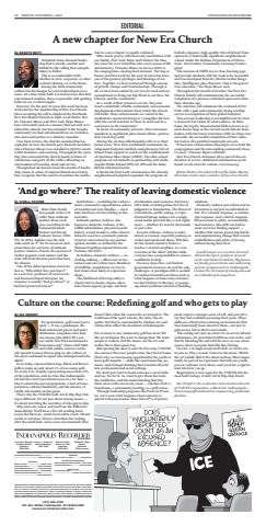 A6 FRIDAY, OCTOBER 3, 2025 INDIANAPOLIS RECORDER(317) 924-5143P.O. Box 18499, Indianapolis, IN 46218-0499newsroom@indyrecorder.comIndianapolis Recorder Newspaper encourages short, concise letters to the editor and opinion articles from the public. Letters and opinion articles will be used at the editor%u2019s discretion and are subject to editing. We will not guarantee publication of material received. We cannot guarantee dates of publication. Letters containing libelous or untrue statements will not be published. All letters and opinion articles must include a verifiable full name, address and telephone number. This information will not be published at the request of the writer. Letters and articles should be typed but will be accepted if handwriting is legible.George P. StewartFounder-EditorPublisher1895-1924Marcus C. Stewart Sr.Editor-Publisher1925-1988Eunice TrotterEditor-in-ChiefPublisher1988-1990William G. MaysOwner/ Publisher1990-presentPresident/Chief Executive Officer................................................................................................Robert ShegogEDITORIALEditor-in-Chief.................................Camike Jones Technology Editor......................Rupal Thanawala Arts & Culture Reporter.................Chloe McGowanMulti-Media & Sports Reporter.........Noral ParhamHealth & Environmental Reporter.............................................................................Hanna RauworthBUSINESSBusiness Office/Legals..................CrystalDalton ADVERTISING/MARKETINGSenior Strategic Media Consultant......Rita J. Wise Sales Representative...................Michael FalkerPRODUCTIONProduction Manager..........................................................................................Jeana M. Lewis OuattaraEDITORIALBy LYNELL COOPER More than 16 million people in the U.S. suffer from intimate partner abuse each year, according to the National Intimate Partner and Sexual Violence Survey (NISVS). In 2024, Indiana was the only state rated an %u201cF%u201d for its resources and protections for survivors of intimate partner violence. Ninety-five percent of shelter requests went unmet, and the state still lacks firearm protection laws for abusers. One of the oldest questions survivors face is, %u201cWhy didn%u2019t they just leave?%u201d As a survivor, professor of social work, and licensed clinical therapist, my response is usually %u201cAnd go where?%u201d or %u201cAnd feel protected where?%u201d Institutions %u2014 including law enforcement, community organizations, places of worship and even families %u2014 must take inventory of who%u2019s failing in this narrative. Intimate partner violence, also known as domestic violence, is the willful intimidation, physical assault, battery, sexual assault or other abusive behavior used in a systematic pattern of power and control by one partner against another, as defined by the National Coalition Against Domestic Violence (NCADV). In Indiana, domestic violence %u2014 including stalking %u2014 affects one in two women and one in four men. Members of LGBTQ+ populations are two to four times more likely to experience abuse. The likelihood of leaving safely is closely tied to shame, stigma, alienation from support groups, and lack of education and resources. Survivors often hide escalating abuse for fear of judgment or humiliation. The threat of cyberattacks, public outing, or reputational damage makes even a single social media post feel like a viral nightmare %u2014 whether it%u2019s seen by thousands or just a few. In some cultures, violence is minimized or excused, especially jealousy or verbal and emotional abuse. Whether it%u2019s the church ministry leader, a teacher, a trusted neighbor, or a conversation at the elders%u2019 kitchen table, everyone has a responsibility to remove roadblocks to help. Housing disparities and limited government resources are not the only challenges. A paradigm shift is needed to confront harmful narratives such as %u201cwhat happens at home stays at home,%u201d %u201cwe don%u2019t believe in therapy,%u201d or gossiping about problems instead of building solutions. Domestic violence prevention and intervention is not just an individual effort. It is a family response, a community response, and a church response. When rooted in safety, accountability, and resources, this shift can lead to more survivors finding support %u2014 whether that means preserving family and implementing change that creates rehabilitation and safety or leaving without losing their lives. Lynell Cooper is a survivor, licensed clinical therapist, professor of social work, and doctoral student. She focuses on family preservation and addressing systems of oppression in Indianapolis. Contact her at lcooper@uindy.edu and on LinkedIn @lwcooperlcsw. By BARATO BRITTTurbulent times demand leadership that is steady, resolute and faithful to the calling that compels others to follow. This is an undeniable truth, whether in civic, corporate, or other societal relations, or in the home. Among the faith community, seldom has the hunger for such leadership been so acute. At a time when faith is tested in ways that defy conventional wisdom, those responsible with guiding believers are in short supply. However, for the past 35 years this need has been irrelevant for the membership of New Era Church. Since accepting the call to shepherd the Northside New Era Baptist Church in 1990, Lead Pastor, Rev. Dr. Clarence Moore and First Lady Hope Moore have stewarded souls in a manner that not only revitalized the church, but has extended to the broader community via their intentional focus on revitalization and social justice as a ministry mandate. Over their tenure, the church%u2019s membership has exploded. In fact, the church grew from 60 members when Clarence Moore was installed in 1990 to nearly 2,000 members and counting. Throughout the years, they have stewarded the church family in times of celebration and grief, all the