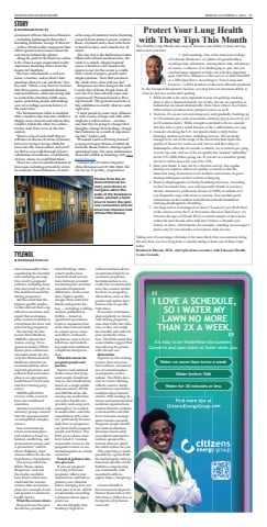 INDIANAPOLIS RECORDER FRIDAY, OCTOBER 3, 2025 A7TYLENOL%u00a8Continued from A1Find more tips at CitizensEnergyGroup.comI LOVE A SCHEDULE, SO I WATER MY LAWN NO MORE THAN 2X A WEEK.Client/Filename: Citizens Energy Group 13971-08 W2SM Game Show_5.075x10.5_FINALWater no more than twice a weekWater for 30 minutes or lessWater before 7AM It%u2019s easy to be WaterWise this summer. Conserve and save water at home when you:Find more tips at CitizensEnergyGroup.comProtect Your Lung Health with These Tips This MonthThis Healthy Lung Month, take steps to increase your ability to keep moving and to feel your best: 1. Quit smoking. One of the American College of Lifestyle Medicine%u2019s six pillars for good health is avoiding risky substances. Among those risky substances, of course, is tobacco. It is challenging to quit, but you can fi nd many supports to help you with this important goal. Quit Now Indiana is a free service (1-800-784-8669 or 1-800-Quit-Now). According to %u201cYour Lungs and Exercise,%u201d a 2016 factsheet in the series Breathe produced by the European Respiratory Society, you may have an increased ability to exercise just two weeks after quitting.2. While health is the most important reason for quitting smoking, there is also a fi nancial benefi t. As of July, the tax on cigarettes in Indiana has increased dramatically: three times what it was before. Other tobacco products have jumped in price as well.3. Exercise. If you are not exercising now, start gradually, building up to 150 minutes per week of moderate-intensity physical activity (21 to 22 minutes daily). While it might seem hard to fi t in, consider that this time is just a small fraction of the 1,440 minutes in a day. 4. Consider checking the U.S. Air Quality Index (AQI) before planning outdoor activities, including exercise. We are lucky enough to be out of the range of the forest fi res that injure the quality of the air for weeks on end, but we still have days in Indianapolis when the air outside is unsafe. Go to airnow.gov, plug in your zip code, and see if the air quality has reached %u201cunhealthy%u201d levels (151-200) before going out. If you are in a sensitive group, the level will be lower for you (101-150). 5. Dust your home. It may not be a favorite activity, but regular dusting can improve indoor air quality, so much so that the American Lung Association even includes instructions on good dusting techniques on their website at lung.org. 6. Practice diaphragmatic (or belly) breathing exercises. According to the Cleveland Clinic, you will especially benefi t if you have chronic obstructive pulmonary disease (COPD) or asthma or if you frequently cope with stress or anxiety. You can fi nd quick instructions on this method at health.harvard.edu/healthbeat/learning-diaphragmatic-breathing. 7. Get lung cancer screenings (low-dose CT scans) if you fi t all three of the criteria set by the U.S. Preventive Services Task Force: (1) between the ages of 50 and 80 (2) a current smoker or have been within the past decade and a half and (3) have a 20 pack-year history or more, which means, for example, smoking (on average) a pack a day for two decades or two packs daily for one.Taking care of your lungs will make it far more likely that you can keep doing the activities you love long-term. Consider taking at least one of these steps today.Broderick Rhyant, M.D., chief physician executive with Eskenazi Health Center Grandeprominent African American Hoosiers %u2014 including Indianapolis Recorder%u2019s founding publisher, George P. Stewart %u2014 with a virtual reality component that allows guests to learn more about the real stories behind the photos.Along the path to the final two cabins is the Time Looper augmented reality experience featuring actors from the Asante Art Institute.%u201cWe have a blacksmith, a civil war nurse, a teacher, and so there%u2019s four questions that you can ask them,%u201d Cosbey said. %u201cThat%u2019s a way that we can have that first-person, costumed element represented here, while also being able to control the situation a little more, again, protecting people and making sure we%u2019re telling accurate history at the same time.%u201dThe Reclamations cabin is modeled after a modern-day museum exhibit to display more artwork and objects they couldn%u2019t within the other two cabins, Cosbey said. Here we%u2019re in the 21st century.%u00a0%u201cThere%u2019s a lot of nasty stuff that we still have to discuss in terms of history, but we%u2019re trying to bring a little bit more into the conversation, and you%u2019ll see that as you walk through of just a celebration of resilience, a celebration of wins, where we could find them.%u201dThere are a lot of colorful elements in this room, including artwork by artistin-residence Israel Solomon, an interactive map of sundown towns featuring research from James Loewen, a Green Book, a hymnal and a choir robe from a church in Gary, and a family tree of music.The last stop is the Reflections Cabin. Filled with natural ambient noise, the cabin is a simple, chapel-inspired space; it features a few benches for guests to rest. In the corner is a table with a stack of papers, pencils and a single question, %u201cNow that you know the whole story, what will you do?%u201d%u00a0Responses are then hung on the wall. I read a few of them. People from all over the U.S. have already come and experienced %u201cPromised Land as Proving Ground.%u201d The general consensus is this exhibition is exactly what we need right now.%u201cI want people to come away ultimately, with a sense of hope and with what might be a call to action %u2026 of some way that they%u2019re going to change their thoughts, change their feelings, change their behavior as a result of experiencing this,%u201d Cosbey said.%u00a0%u201cPromised Land as Proving Ground%u201d is open at Conner Prairie, 134000 Allisonville Road, Fishers, during regular operating hours. For more information about the exhib