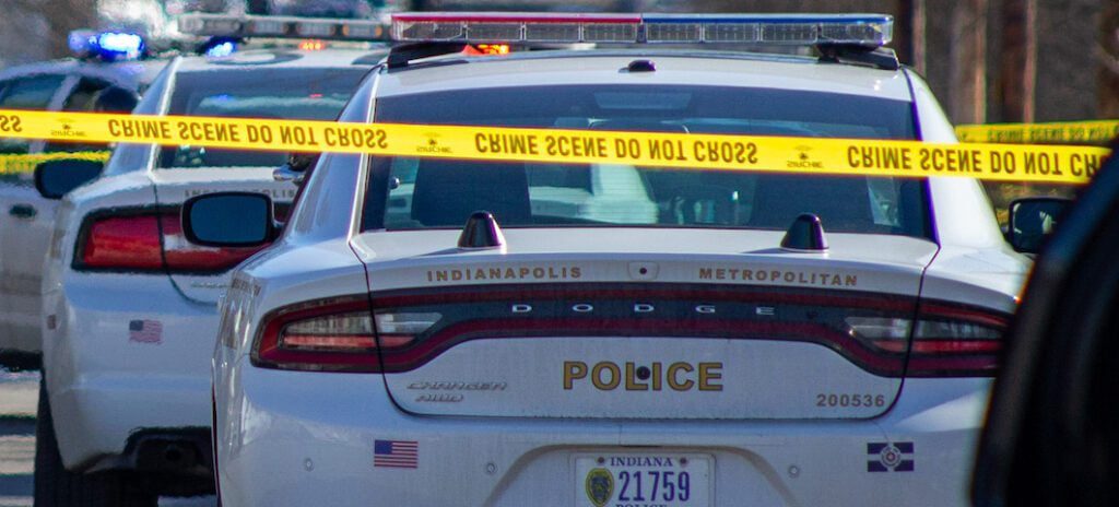 An Indianapolis Metropolitan Police Department car parked at a crime scene in February 2021. (Photo/Tyler Fenwick)