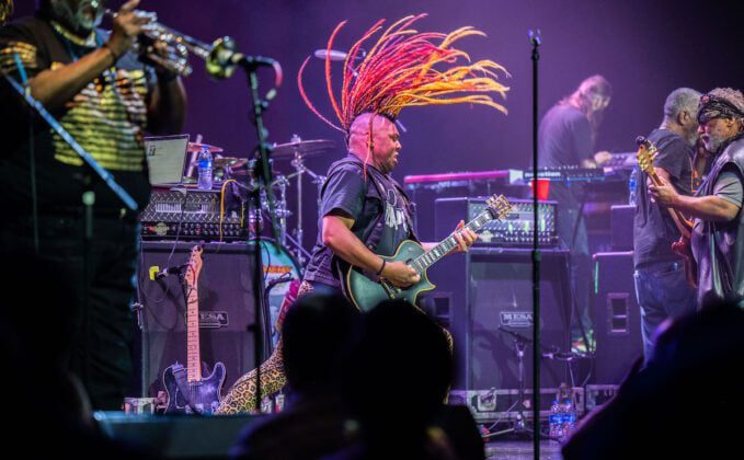 Parliament-Funkadelic’s “One Nation Under A Groove” tour arrived in Indianapolis on June 25 at Butler’s Clowes Memorial Hall. Any fears that the band might be rusty from sitting the last couple years out were instantly dispelled. Clinton and his crew hit the stage with a vengeance. After warming things up with some newer material, Clinton led the band through a jubilant setlist of fan favorites, including “Flashlight,” “(Not Just) Knee Deep,” “One Nation Under A Groove,” “Cosmic Slop” and “Mothership Connection (Star Child).” The near-capacity audience was on its feet throughout the entire performance.
