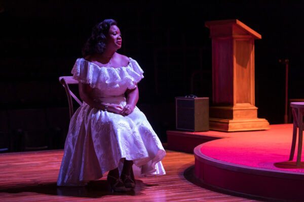 The costume design also serves to juxtapose Tharpe and Knight’s pending first concert together and the funeral Knight is ultimately preparing Tharpe for — unbeknownst to her until the end of the show. The details about how this ends are there from the beginning, as are the jokes, including the one Tharpe makes about the casket being “comfortable.”