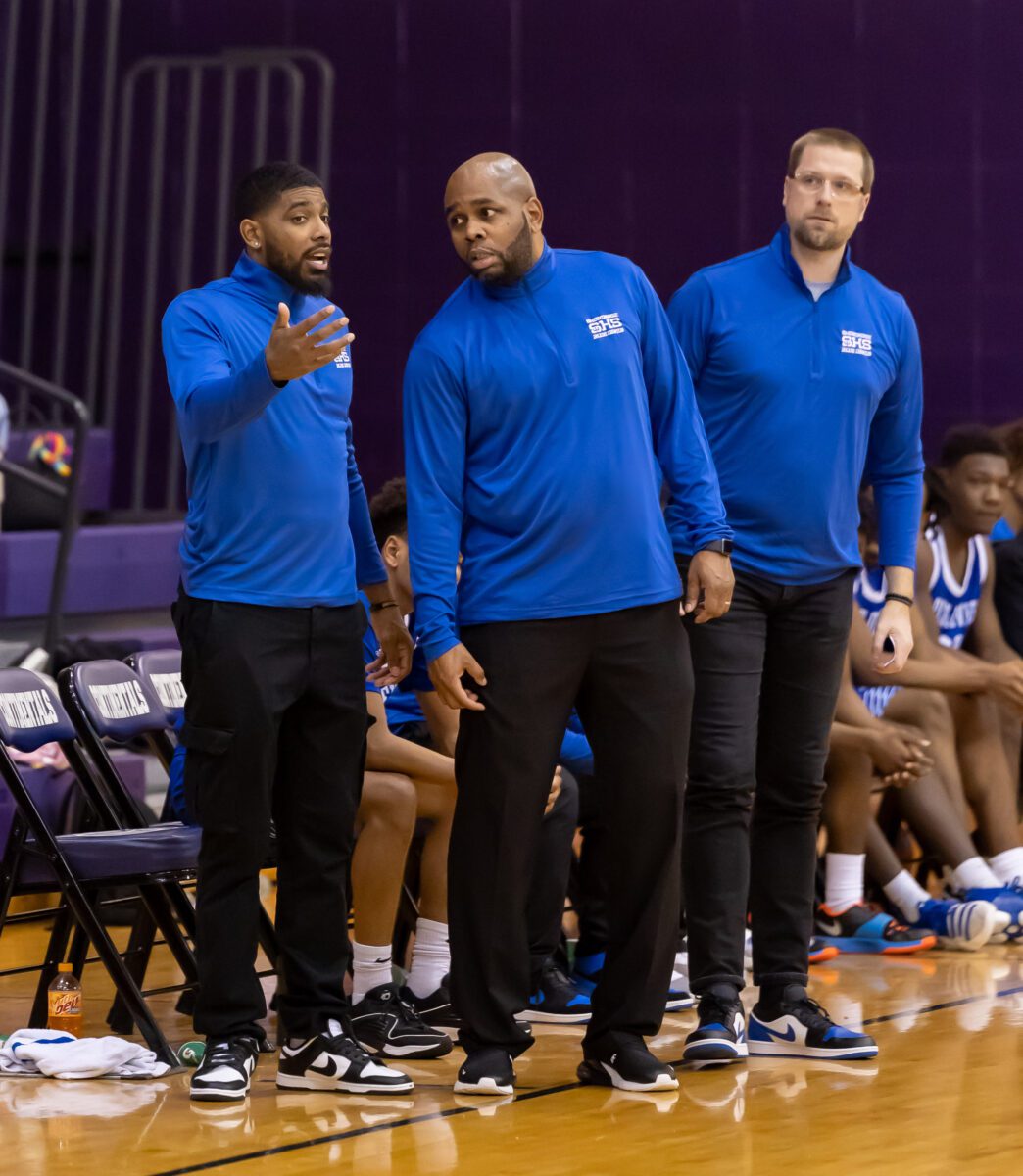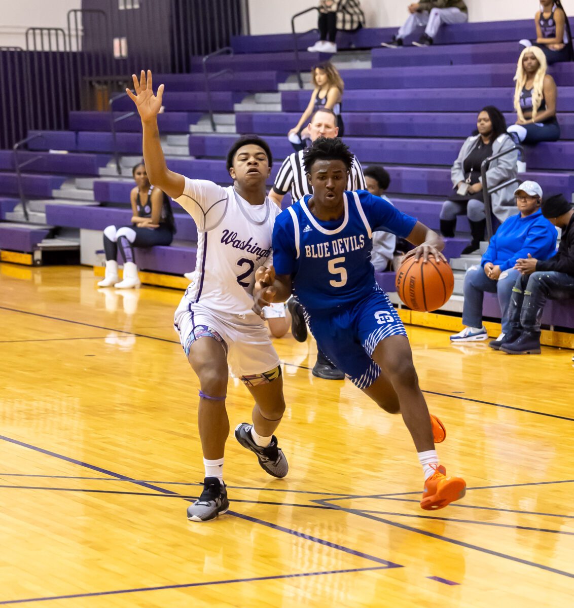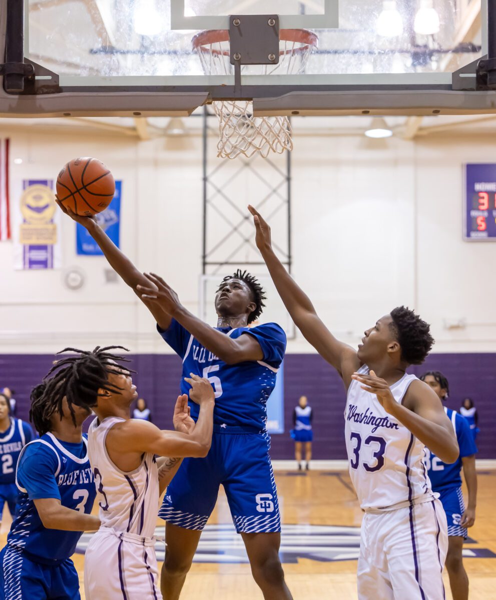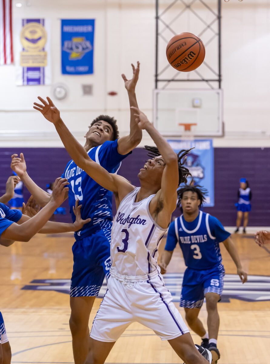 Washington HS player Malique Starks (3) squares up a shot against a Shortridge High School Blue Devils defender during their matchup on January 12, 2024 at Washington High School in Indianapolis, IN. (Photo/Walt Thomas)Washington HS player Malique Starks (3) bring the ball up the court during their matchup against Shortridge HS on January 12, 2024 at Washington High School in Indianapolis, IN. (Photo/Walt Thomas)Blue Devil Gavin Lowery (2) goes up strong, avoiding Washington defender Clem Butler (34) during their basketball game at Washington High School on January 12, 2024. (Photo/Walt Thomas) Shortridge Blue Devil Gavin Lowery (2) avoids Washington defenders during their basketball game at Washington High School on January 12, 2024. (Photo/Walt Thomas)The Shortridge High School Blue Devils coaching staff with head coach Donald Yates (center) during their matchup against Washington High School at Washington on January 12, 2024. (Photo/Walt Thomas)Shortridge Blue Devil DaiRon Davis (5) puts up the lay against Washington Defenders during their game at Washington High School on January 12, 2024. (Photo/Walt Thomas)(Photo/Walt Thomas)(Photo/Walt Thomas)Washington High School head coach Aaron Hogg speaking with player Jordan Stratton (0) during their game against the Shortridge High School Blue Devils on January 12, 2024. (Photo/Walt Thomas)Blue Devil DaiRon Davis (5) drives by Washington’s Roosevelt Franklin (2) during their basketball game at Washington High School (Photo/Walt Thomas)